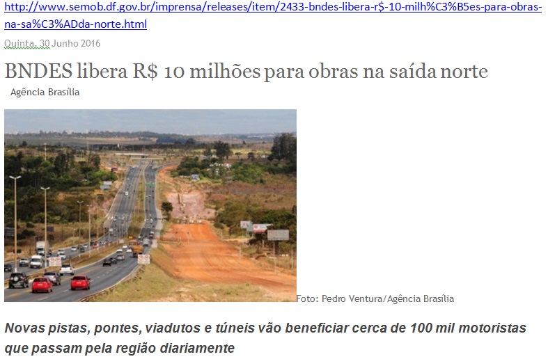 – Notícias do GDF sobre os projetos rodoviaristas no norte do DF: