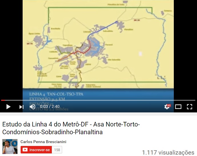 – Vídeo com proposta de transporte por trilhos no norte do DF, elaborado por Carlos Penna: