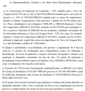 – Solicitação de informações sobre o TTN – Trevo de Triagem Norte (8/5/2018):