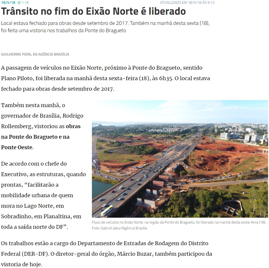 Fonte: Agência Brasília. Disponível em: https://agenciabrasilia.df.gov.br/2018/05/18/transito-no-fim-do-eixao-norte-e-liberado/