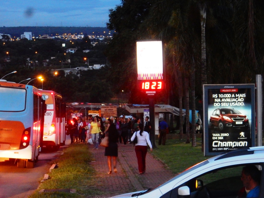 Vale ainda registrar as péssimas condições nos pontos de ônibus, com muitos usuários esperando por longo tempo e tendo que seguir de volta para casa em ônibus superlotados. Diante das condições hostis a quem precisa pegar ônibus no Eixinho, não é de se estranhar a farta quantidade de motoristas que praticam o chamado transporte pirata.