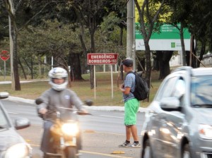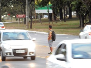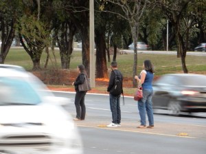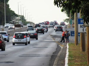 Pedestres em alto risco no final do Eixão Norte.