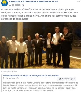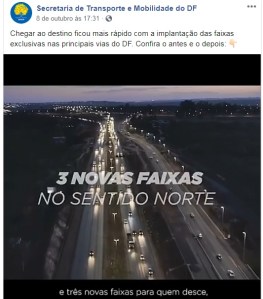 Vídeos divulgados no facebook da Secretaria de Mobilidade e do DER-DF: