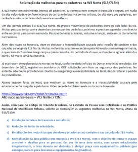 – Solicitação de melhorias aos pedestres na W3 Norte (16/3/2020):