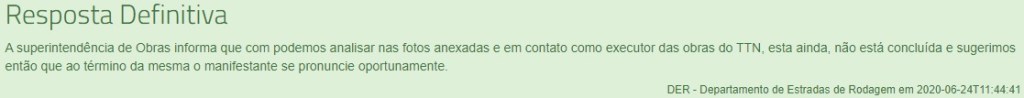 Resposta do DER à solicitação no final da W3 Norte (24/6/2020):