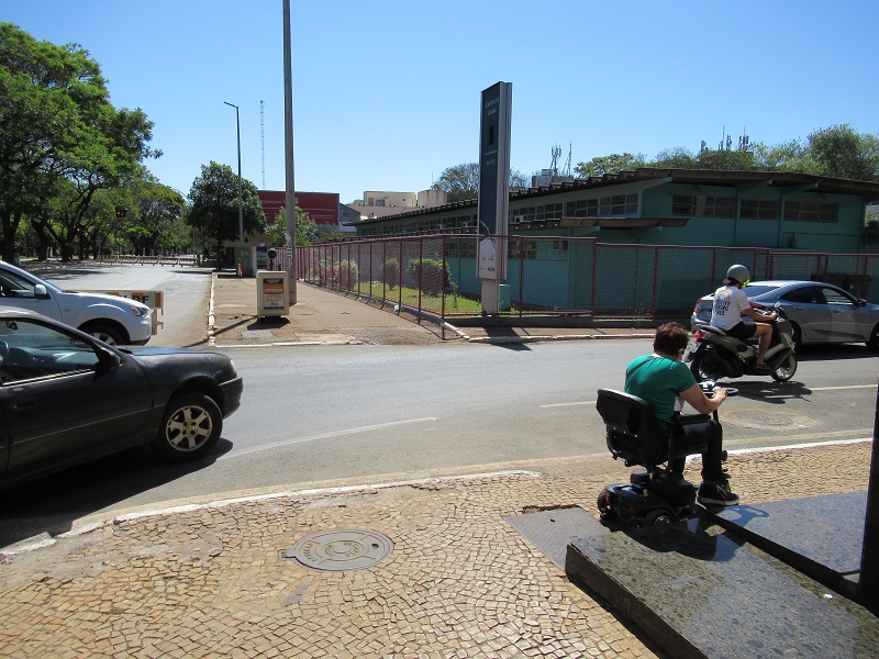 No restante do trajeto pela Esplanada, a calçada continua com piso irregular e também sem rampas e outras adequações de acessibilidade. As fotos revelam os problemas.