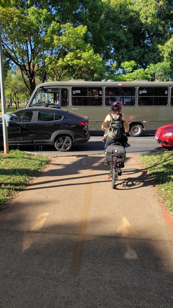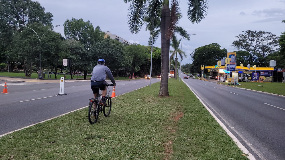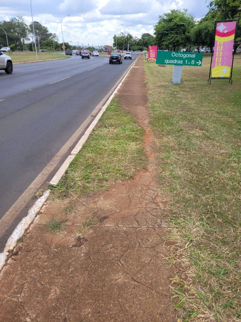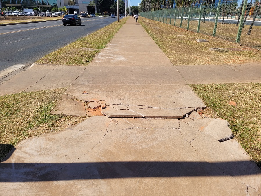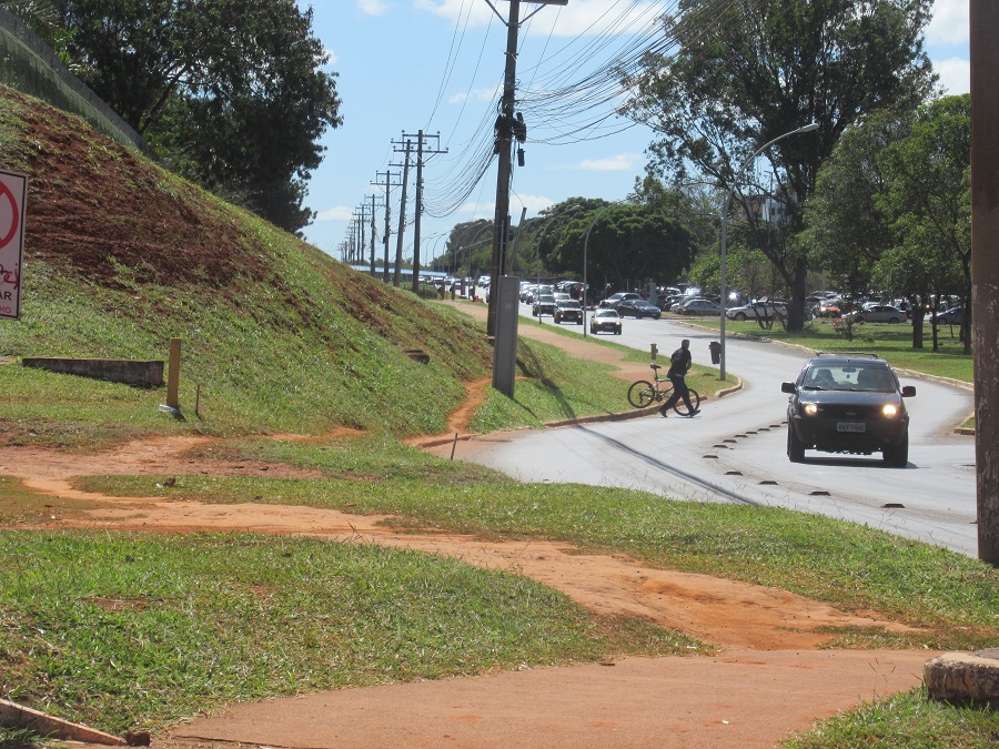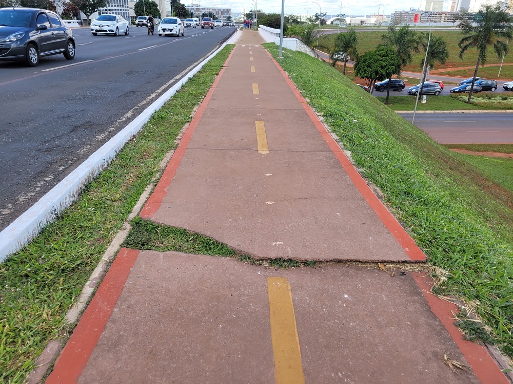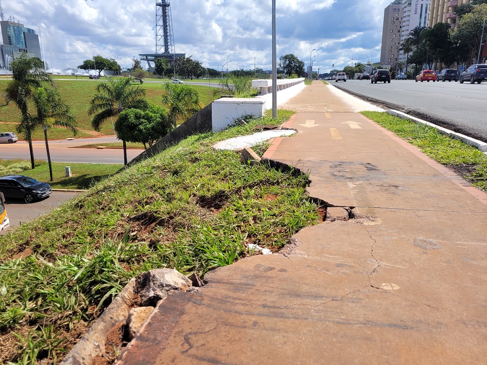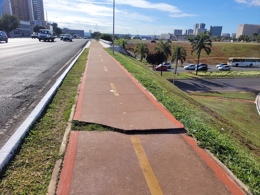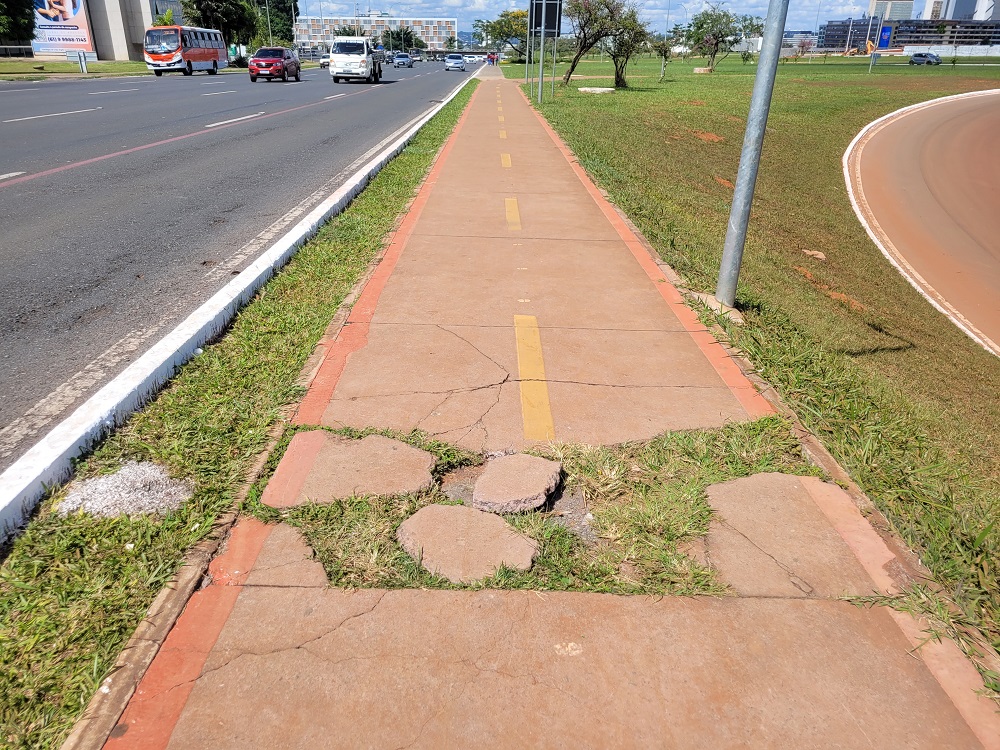 Gostaria de pedir atenção das autoridades responsáveis pela mobilidade no DF. A contradição é grande entre o espaço voltado para o fluxo motorizado (com pistas em bom estado e novos viadutos) e a infraestrutura voltada para pedestres e ciclistas (calçadas e ciclovias sem manutenção e sem continuidade).
