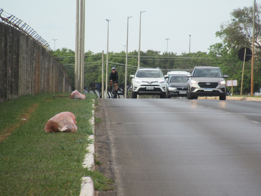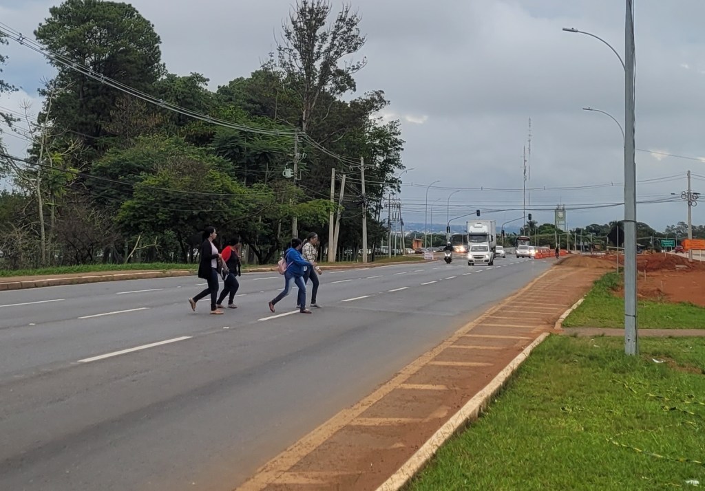 Passei recentemente de bicicleta e o nível de insegurança é alto em razão da ausência completa de calçada e ciclovia, do fluxo motorizado intenso e veloz e da falta de pontos de travessia na via do Setor Terminal Norte (STN).