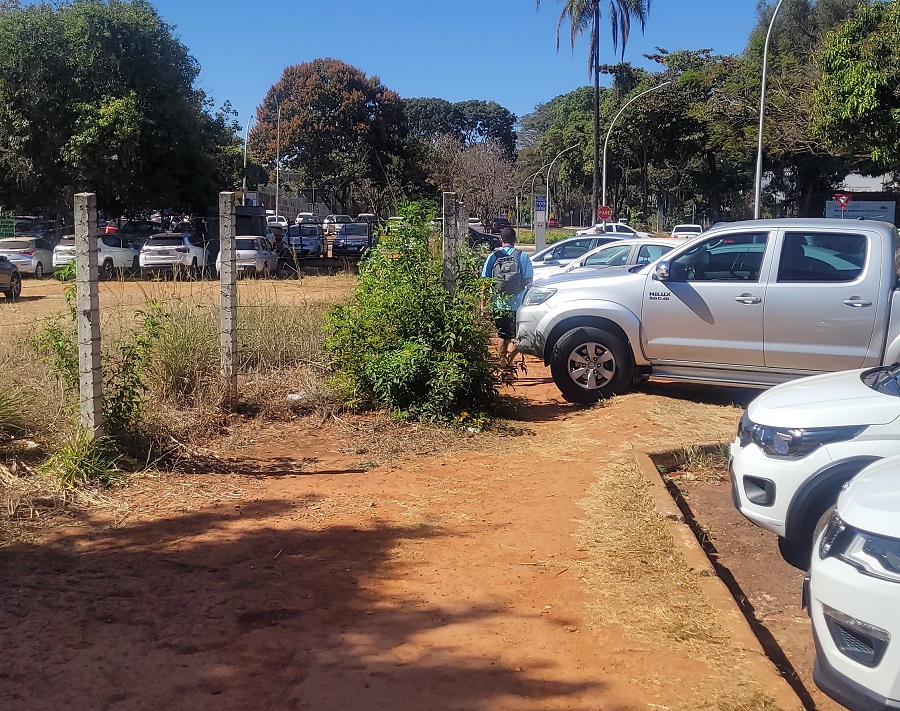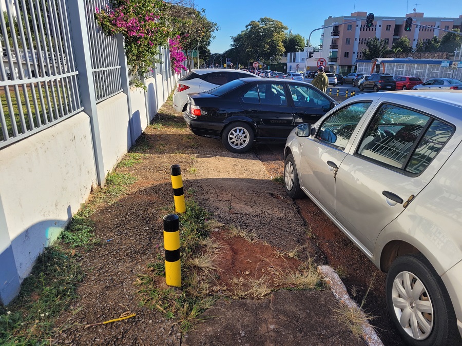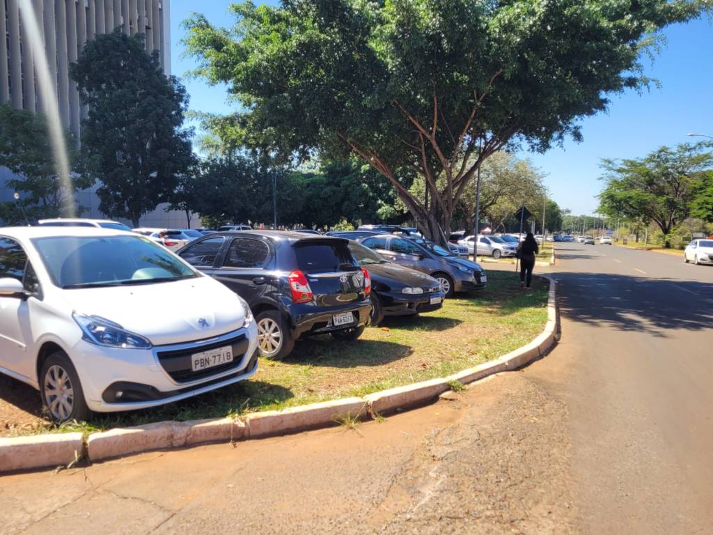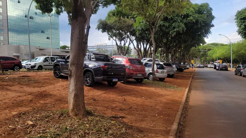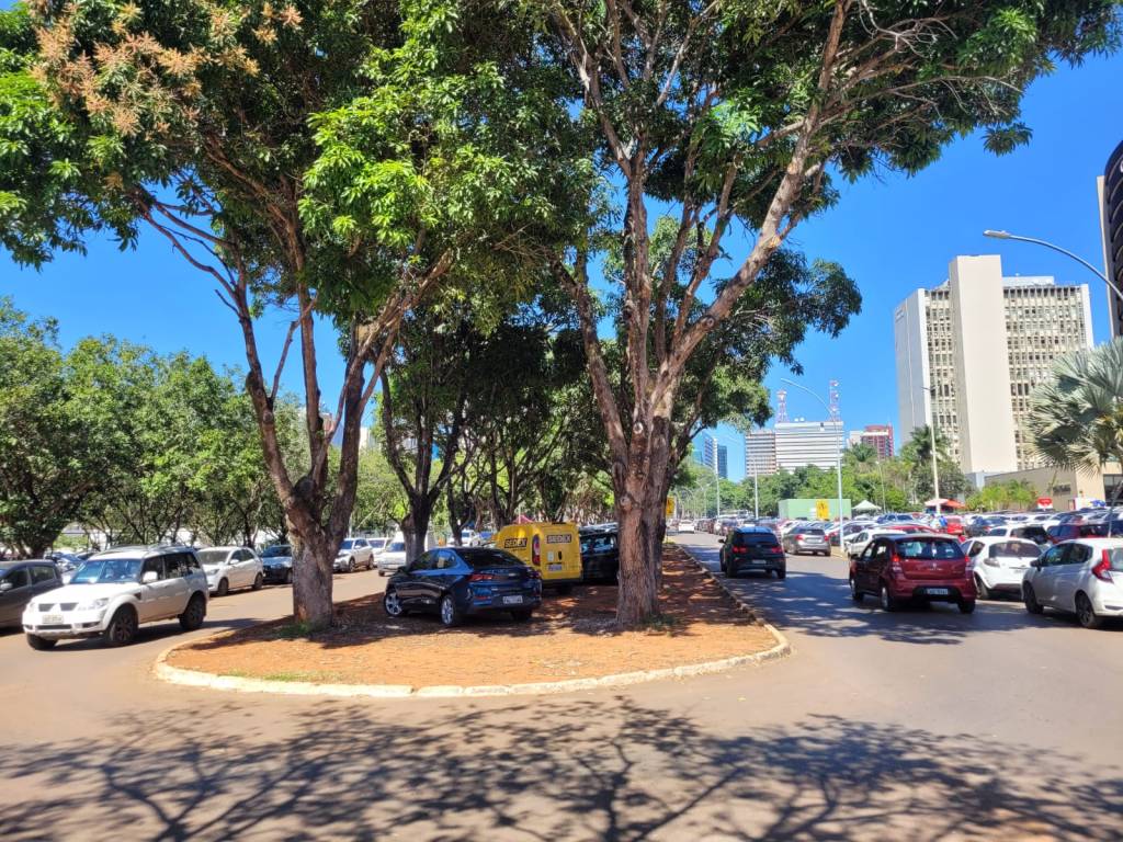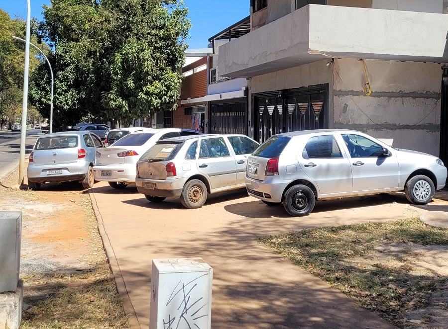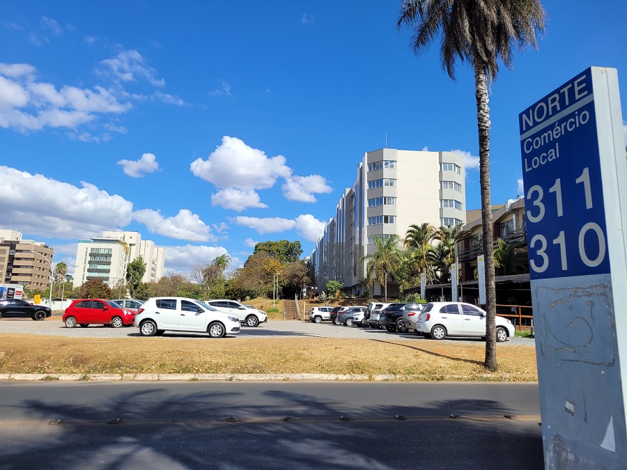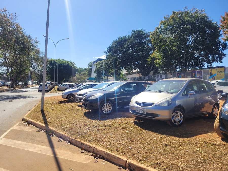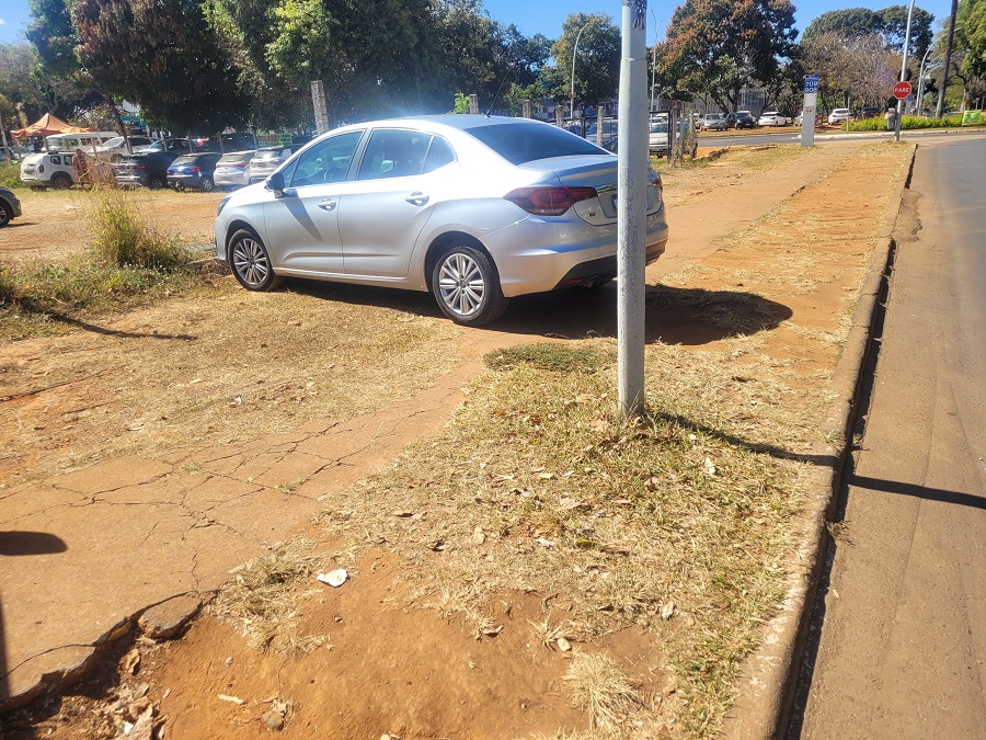 Infelizmente observa-se essa invasão dos espaços verdes – transformados irregularmente em estacionamentos – em muitas quadras comerciais da Asa Norte, o que fere o tombamento da cidade, em particular a escala bucólica.
