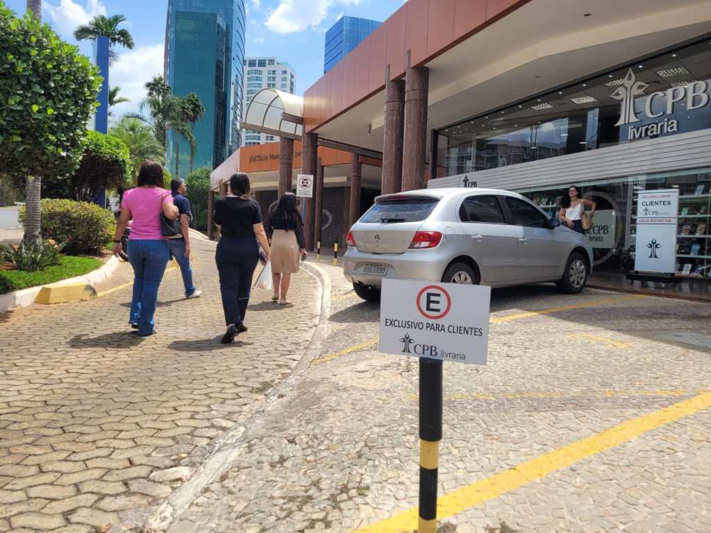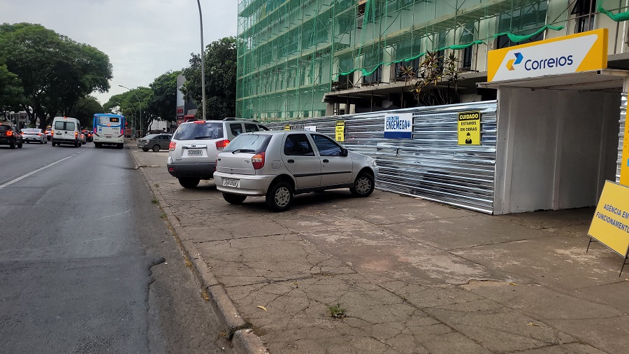 No Setor Comercial Norte, próximo ao Conjunto Nacional, notei que um trecho de calçada foi transformado em estacionamento, na frente de uma livraria. A situação compromete a segurança dos pedestres, que precisam andar na pista.