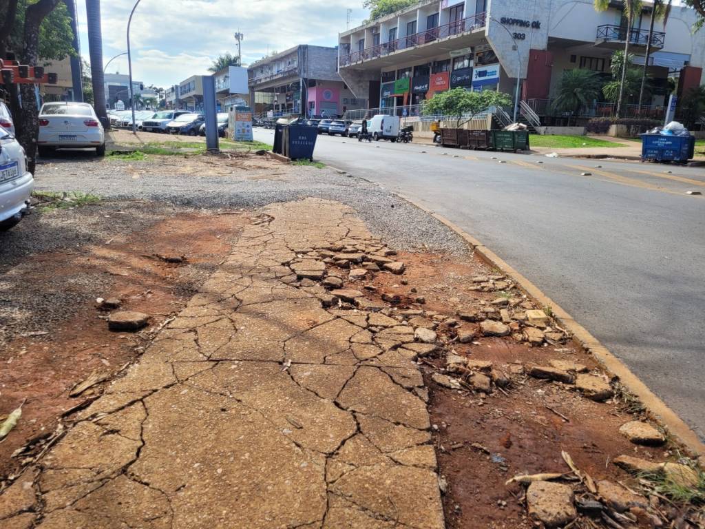 No Setor Hoteleiro Sul, próximo ao Brasil 21 e a um posto de combustível, há um trecho de calçada bem deteriorada, conforme mostrado na foto anexa.