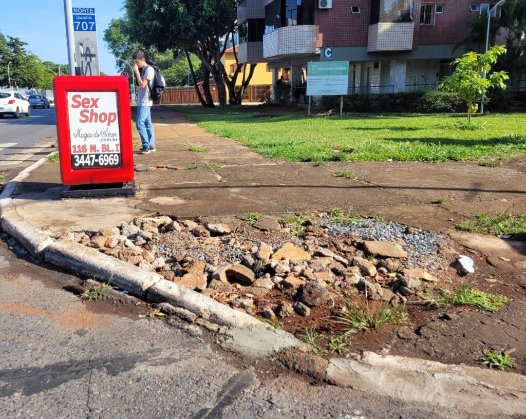 Gostaria de solicitar reparo na calçada localizada na 709 Norte, em frente ao CEUB.