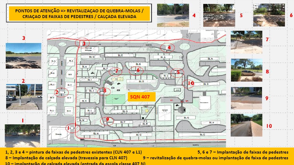 Peço que as autoridades competentes reformem as calçadas e instalem faixas de travessia no final da W3 Norte, altura da 515/516 e 715/716 Norte.