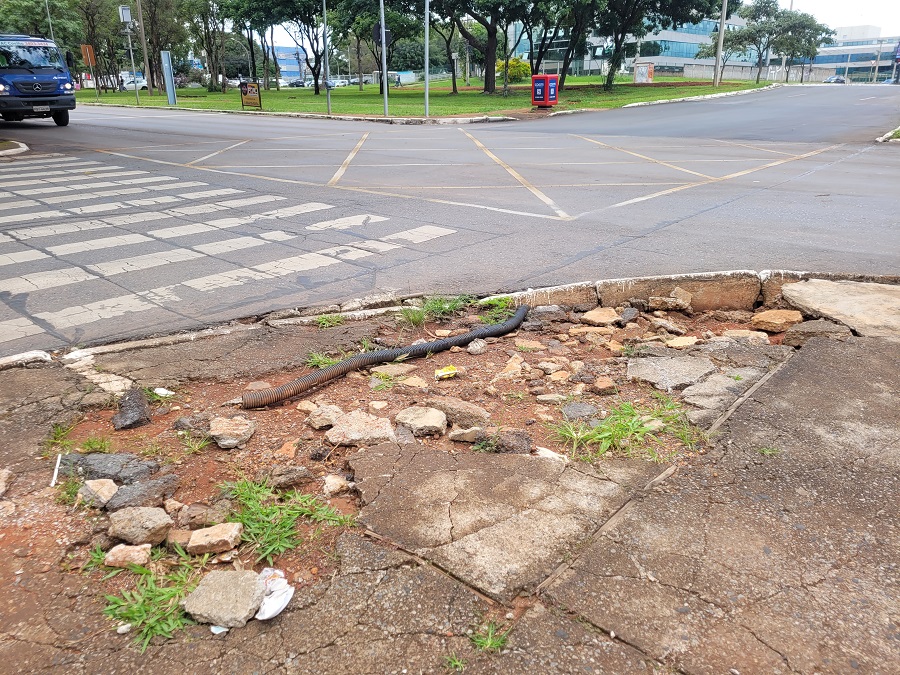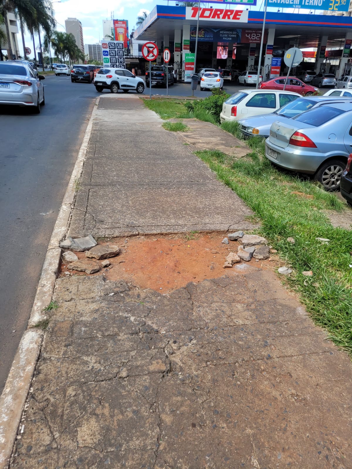 No Setor Hoteleiro Sul, próximo ao Brasil 21 e a um posto de combustível, há um trecho de calçada bem deteriorada, conforme mostrado na foto anexa.