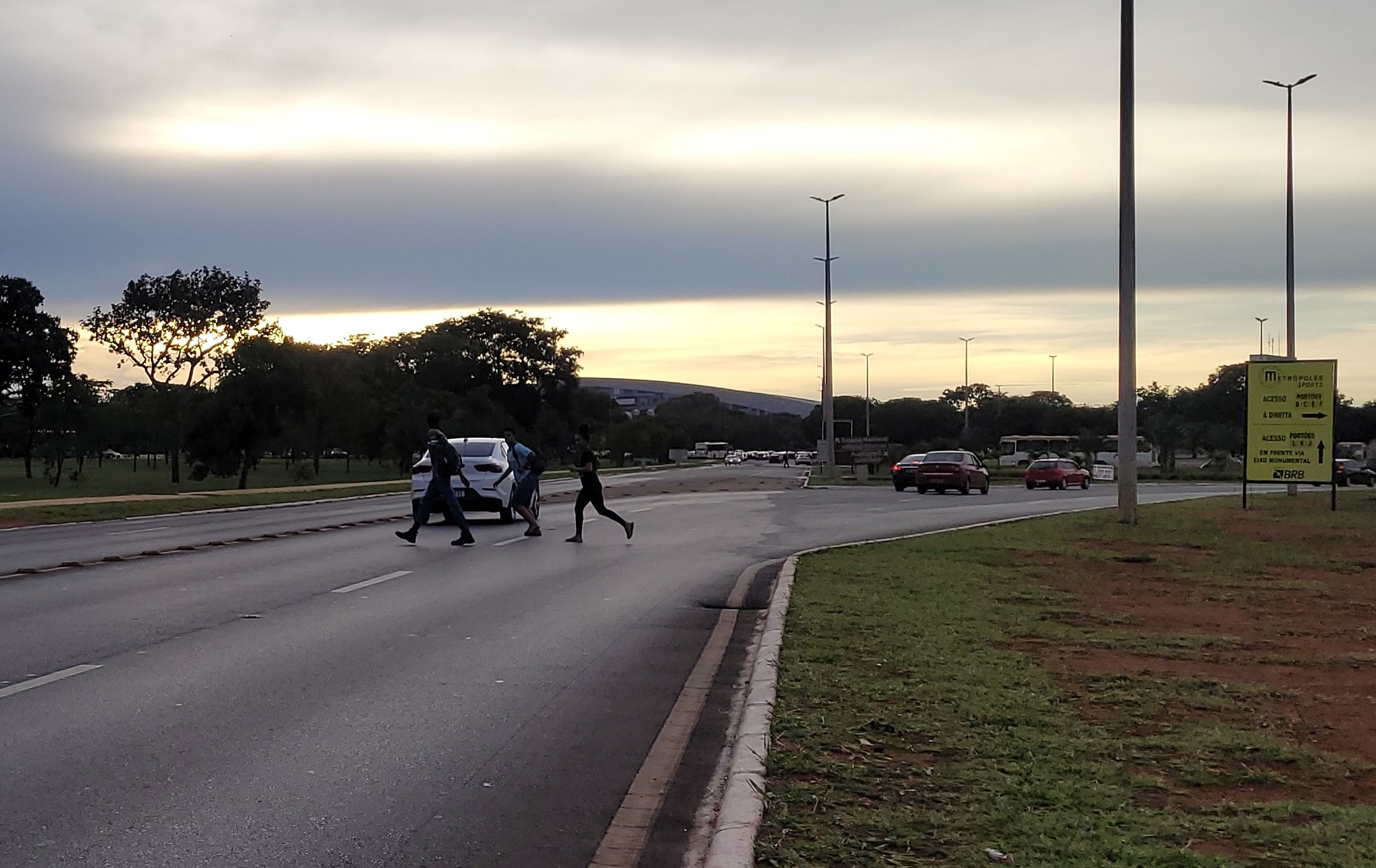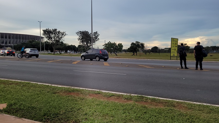 Diante dessa situação, sugiro aos órgãos competentes providências para garantir segurança aos que se deslocam a pé na região. Deixo a sugestão de instalar faixa elevada de travessia, controlar a velocidade dos motoristas e estreitar a via na proximidade do Eixo Monumental (atualmente há três faixas de acesso para os motoristas).