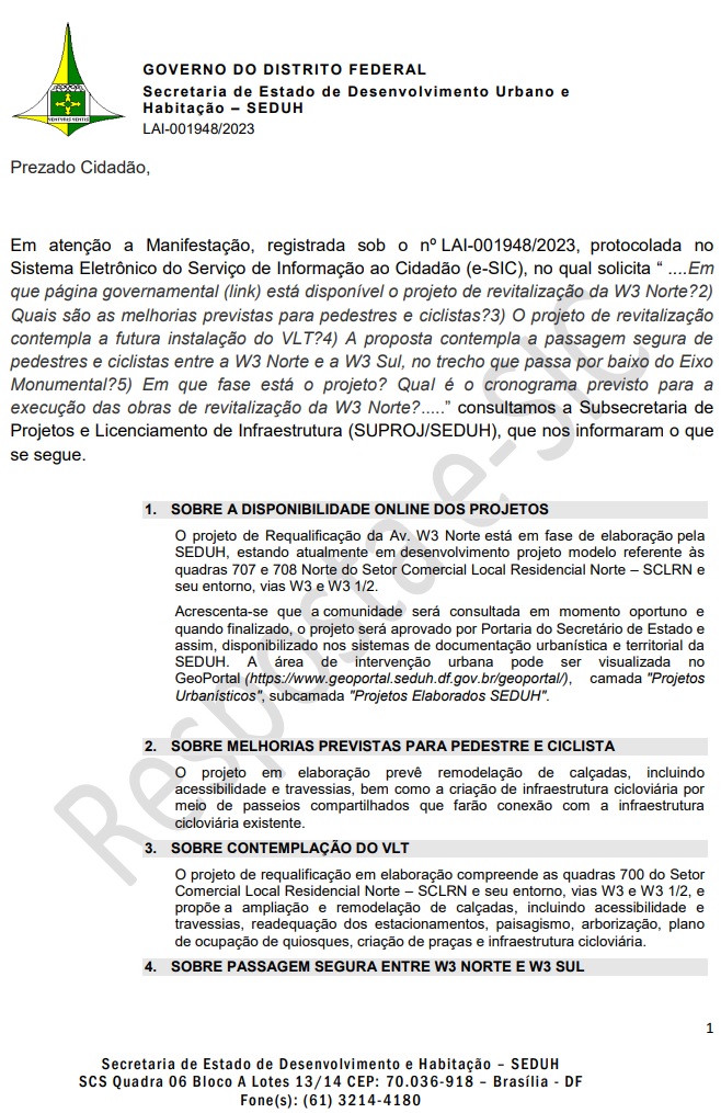– Pedido de Informações – revitalização da W3 Norte (13/2/2023)
