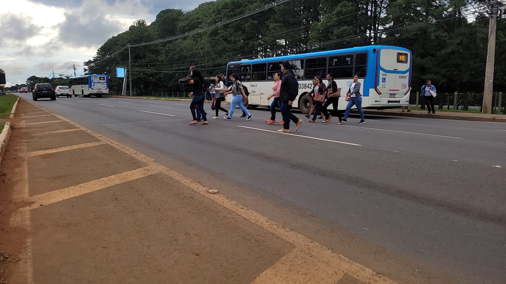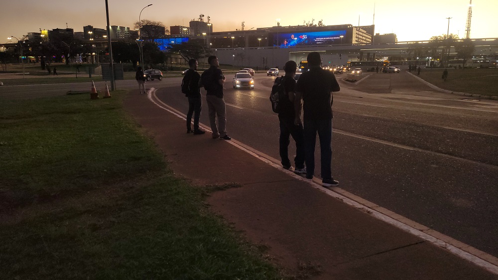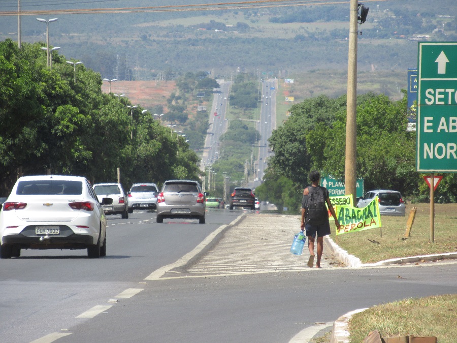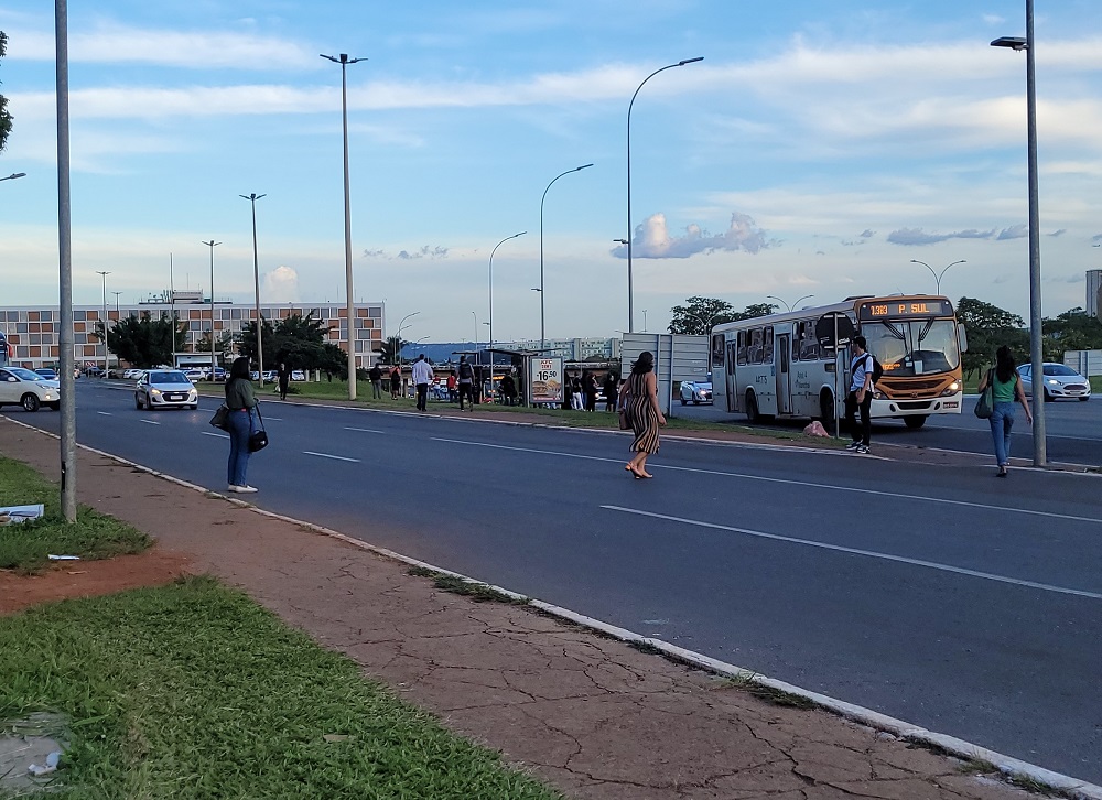 Passei recentemente de bicicleta e o nível de insegurança é alto em razão da ausência completa de calçada e ciclovia, do fluxo motorizado intenso e veloz e da falta de pontos de travessia na via do Setor Terminal Norte (STN).