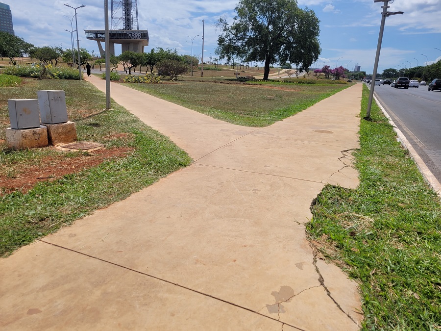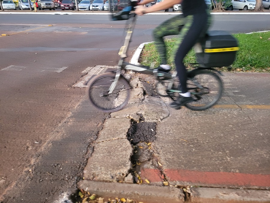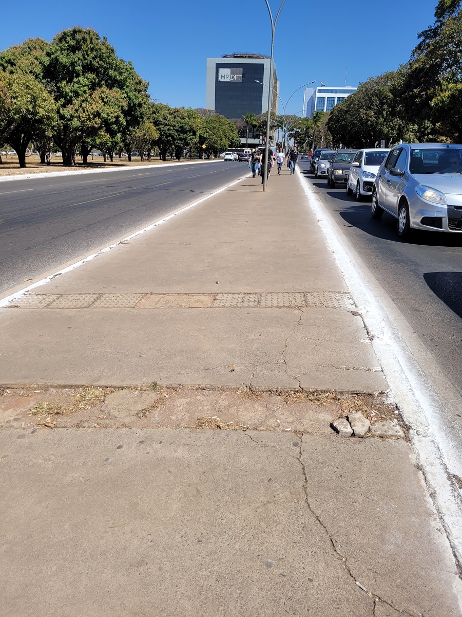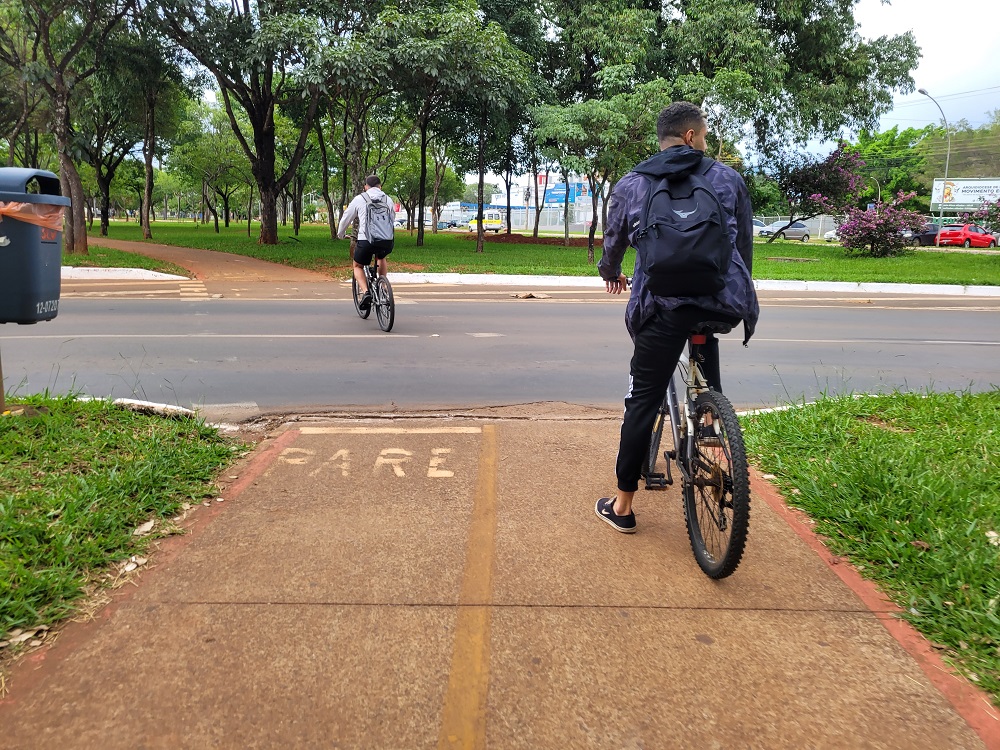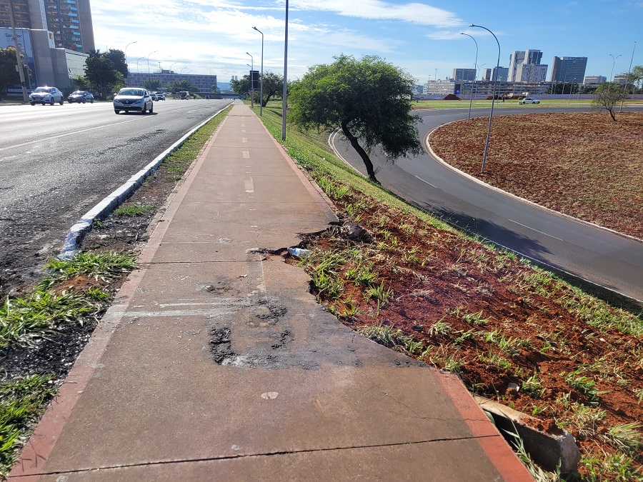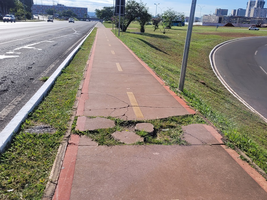 Gostaria de pedir atenção das autoridades responsáveis pela mobilidade no DF. A contradição é grande entre o espaço voltado para o fluxo motorizado (com pistas em bom estado e novos viadutos) e a infraestrutura voltada para pedestres e ciclistas (calçadas e ciclovias sem manutenção e sem continuidade).