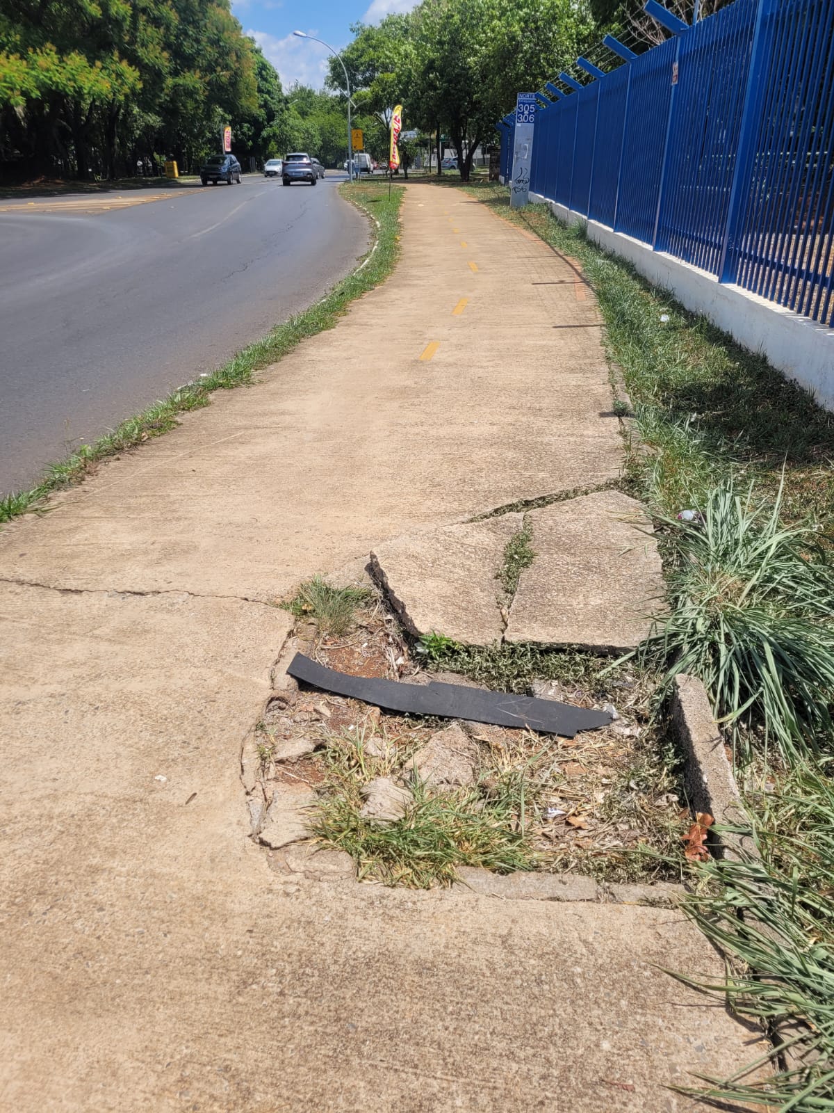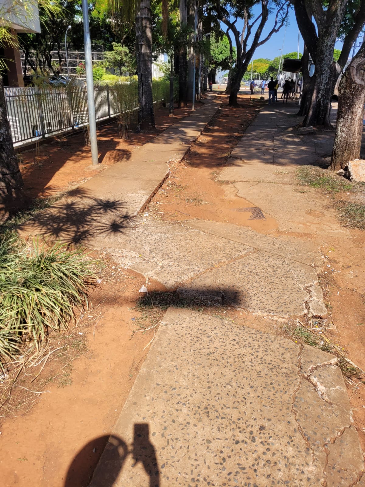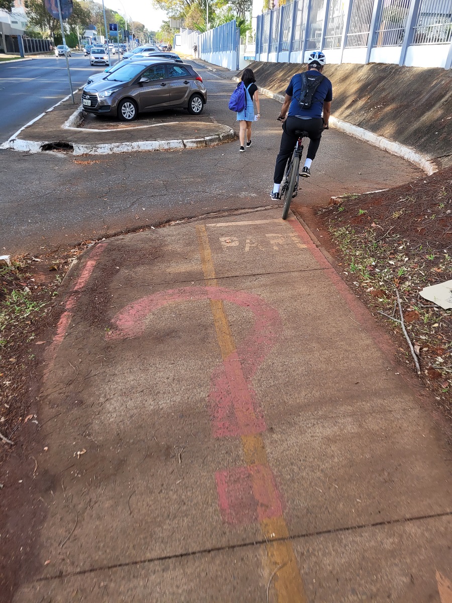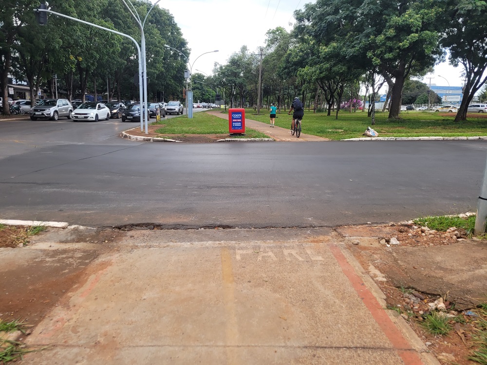 Gostaria de pedir atenção das autoridades responsáveis pela mobilidade no DF. A contradição é grande entre o espaço voltado para o fluxo motorizado (com pistas em bom estado e novos viadutos) e a infraestrutura voltada para pedestres e ciclistas (calçadas e ciclovias sem manutenção e sem continuidade).