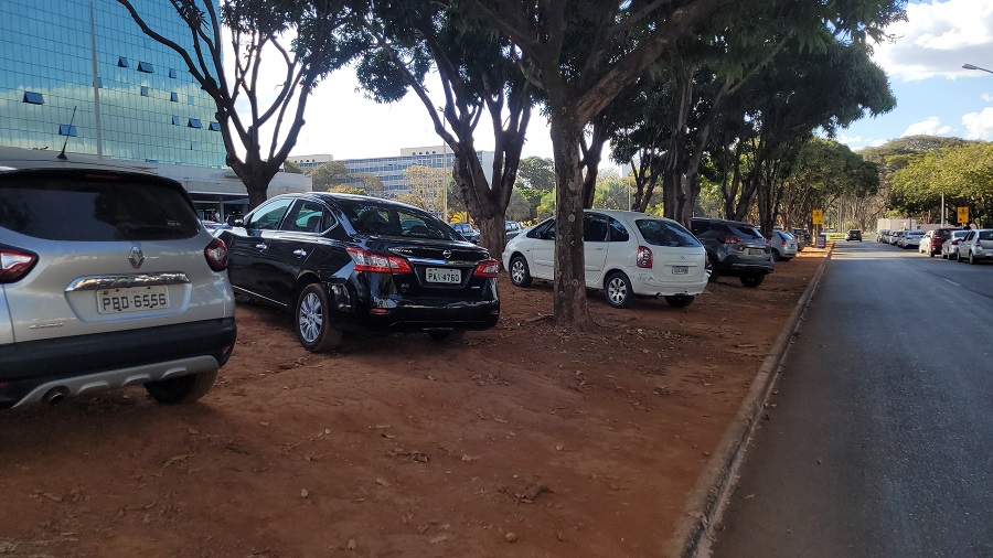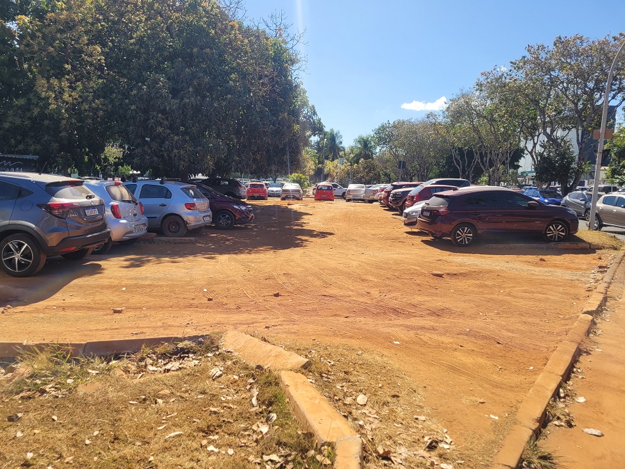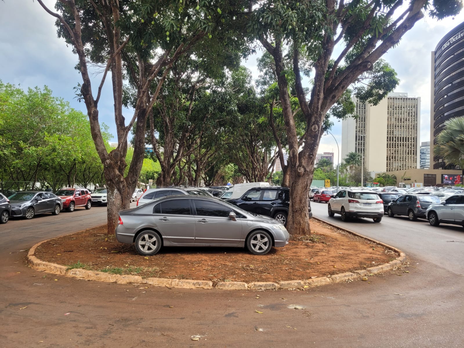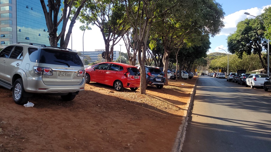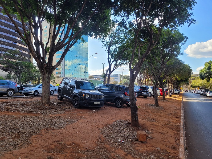 Infelizmente observa-se essa invasão dos espaços verdes – transformados irregularmente em estacionamentos – em muitas quadras comerciais da Asa Norte, o que fere o tombamento da cidade, em particular a escala bucólica.