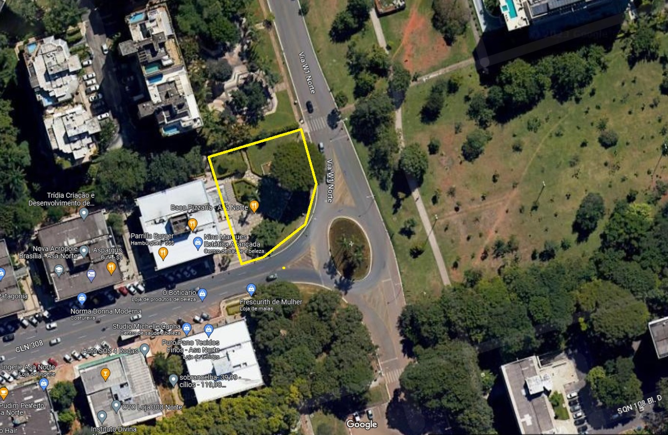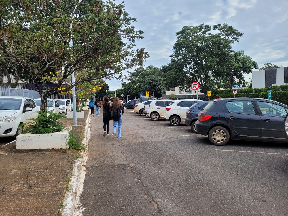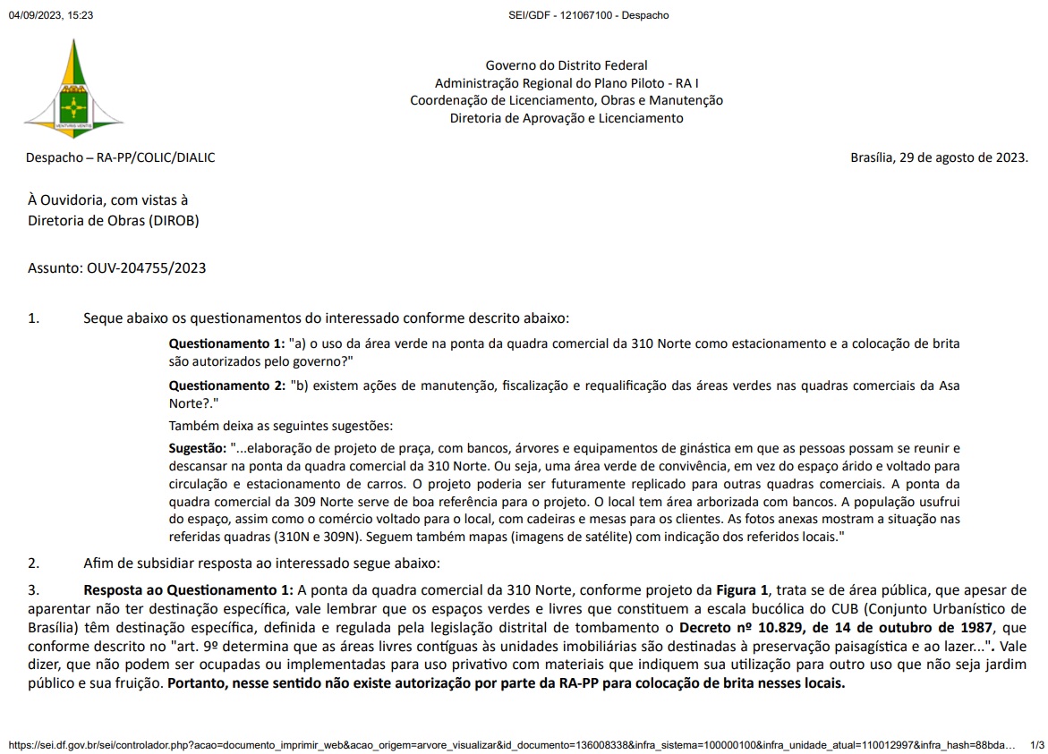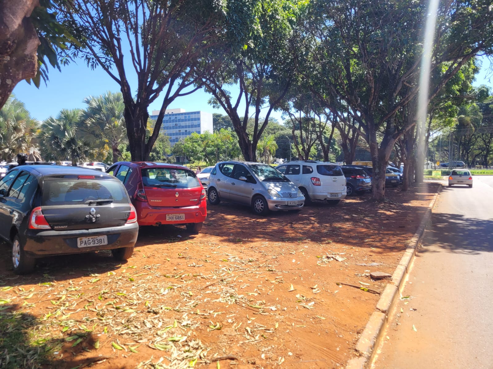 Infelizmente observa-se essa invasão dos espaços verdes – transformados irregularmente em estacionamentos – em muitas quadras comerciais da Asa Norte, o que fere o tombamento da cidade, em particular a escala bucólica.