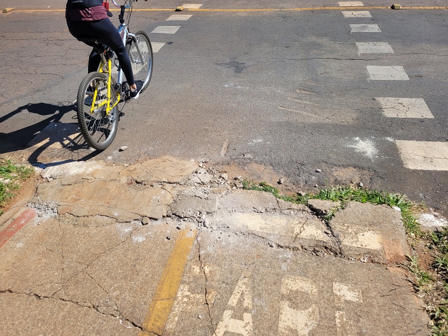 Peço providências das autoridades responsáveis pela manutenção da ciclovia.