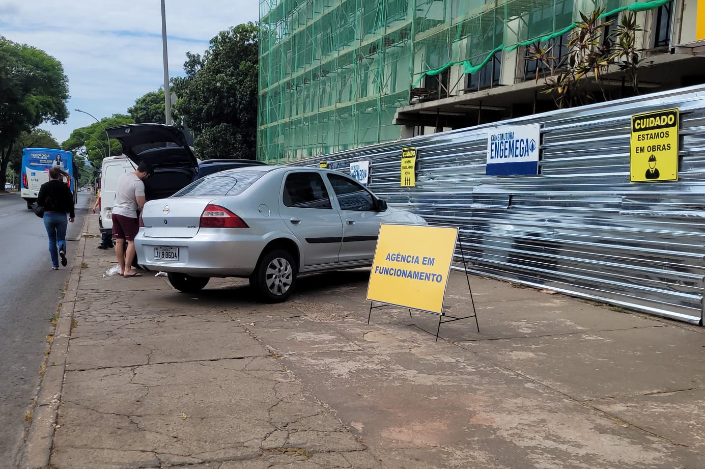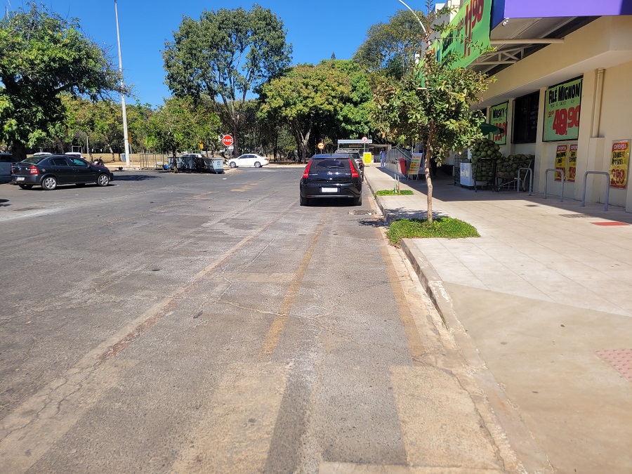 No Setor Comercial Norte, próximo ao Conjunto Nacional, notei que um trecho de calçada foi transformado em estacionamento, na frente de uma livraria. A situação compromete a segurança dos pedestres, que precisam andar na pista.